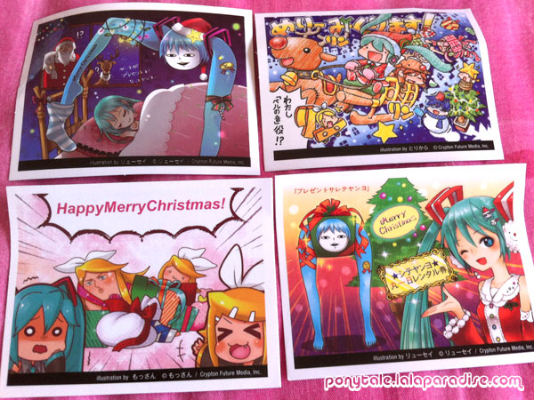 1. @dandycorset: I think Miku Append looks the best too! I didn’t buy the paper crafts cos I figured they won’t be durable :-\ The character design you have is cute. I haven’t seen this work before. Looks interesting :D