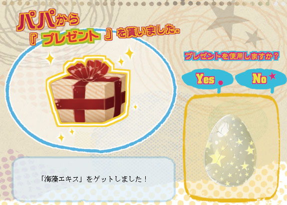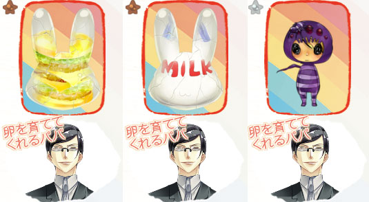 After you manage to get past the registration page, you’ll be asked 4 questions to determine who your Gian’s Papa. Remember to check 3 items per question. I know what the questions are asking for but don’t really know what the most of the answers actually mean ^^;; so I make different combinations until I could get the “Papa” I want for my Gian’s Egg.